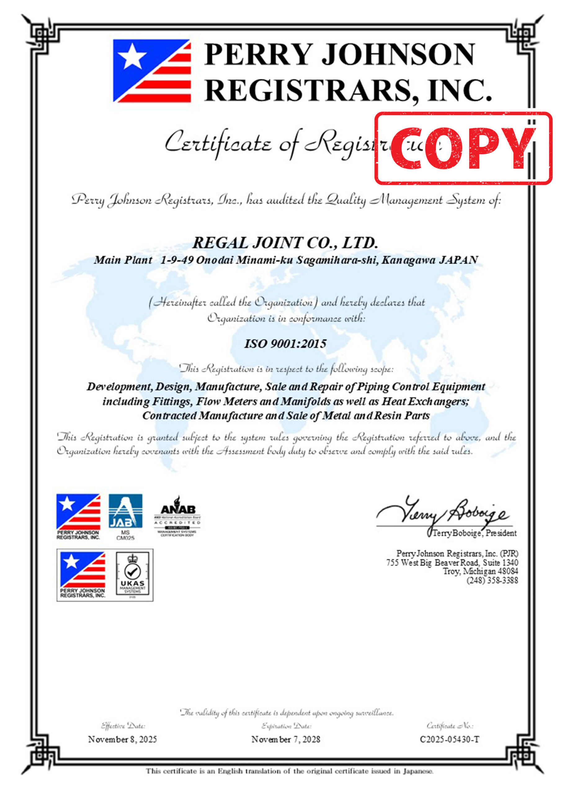 品質の維持・向上が企業発展の最重要課題であるとの認識のもと、経営理念、品質理念を実現するため、品質マネジメントシステムを確立し、その有効性を継続的に改善します。また、関連する法規制、お客様要求事項及び適用される規制要求事項を順守し、お客様から信頼される高品質な商品とサービスを提供するため、全従業員参加で以下の事項に取り組みます。