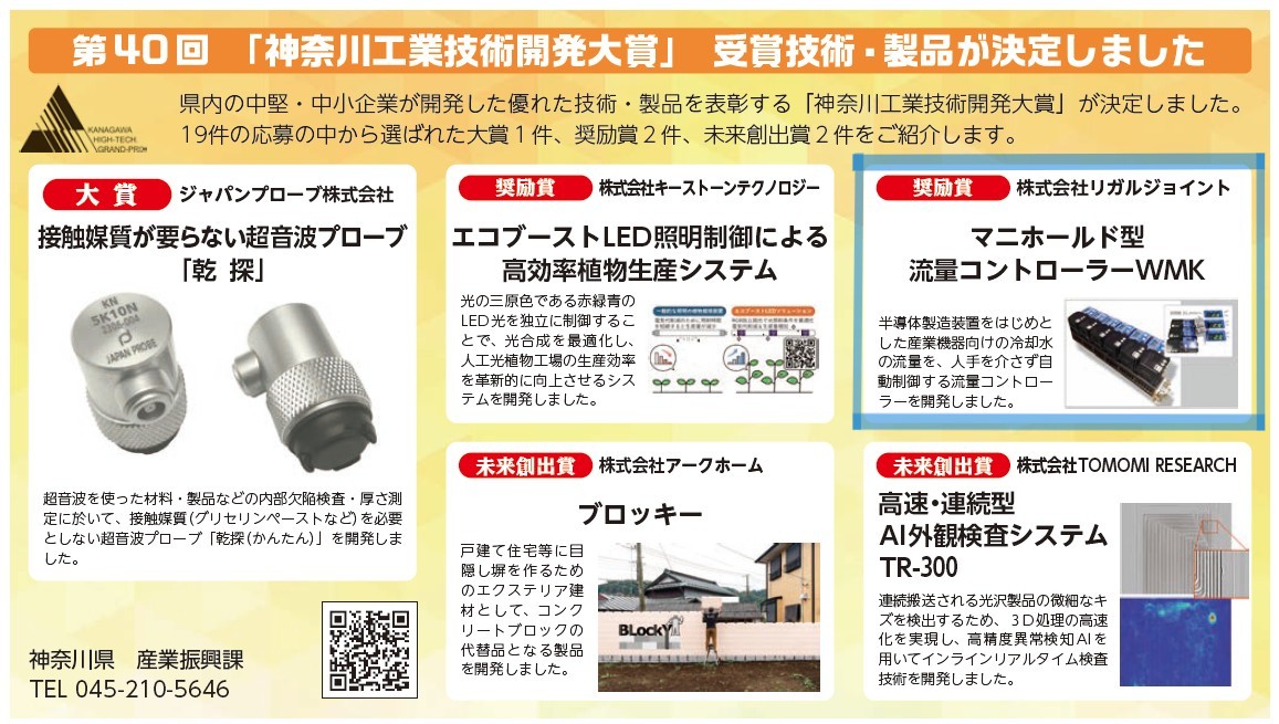 このたび、当社の受賞技術が、神奈川県立産業技術総合研究所の会報に掲載されました。