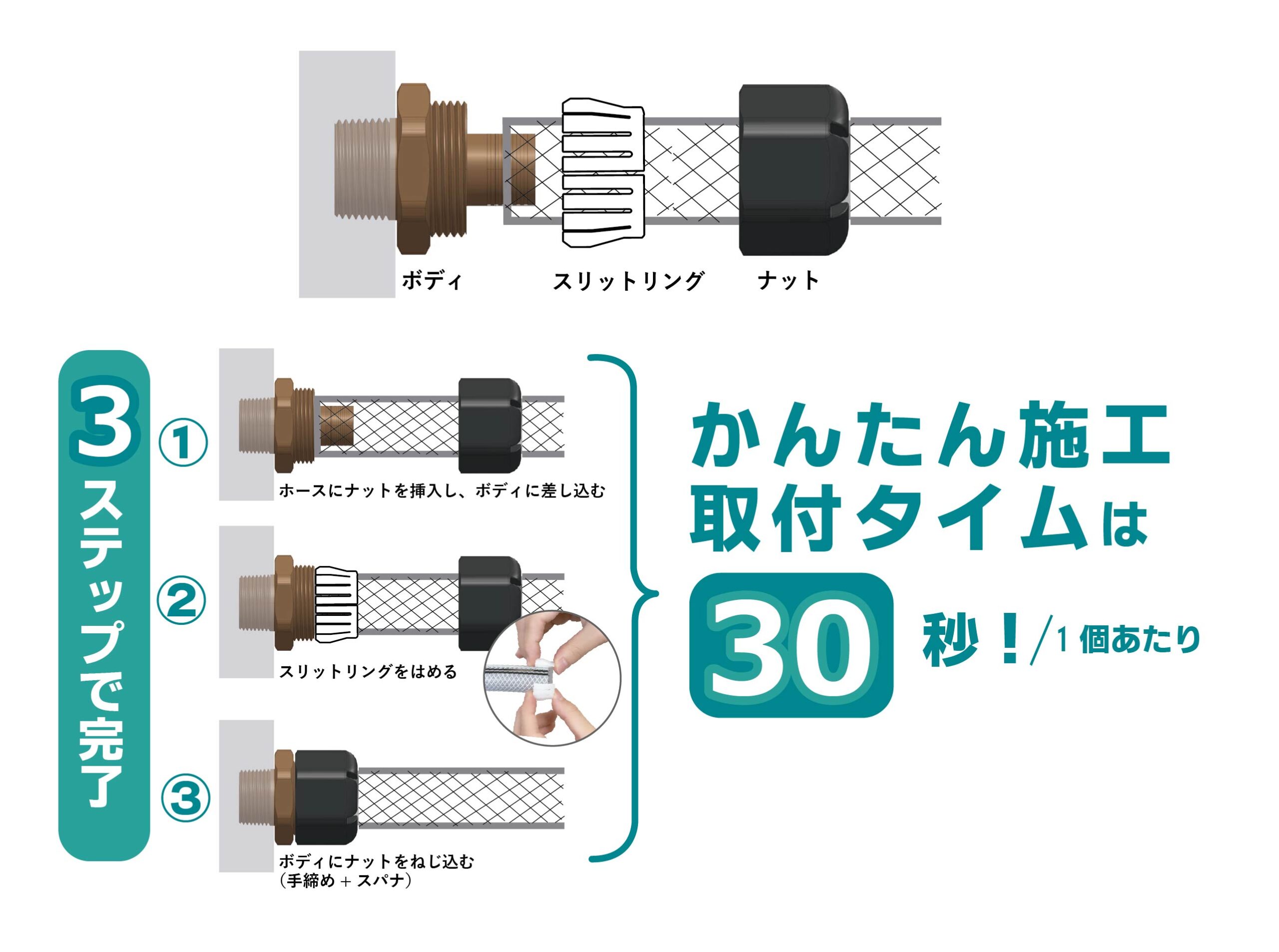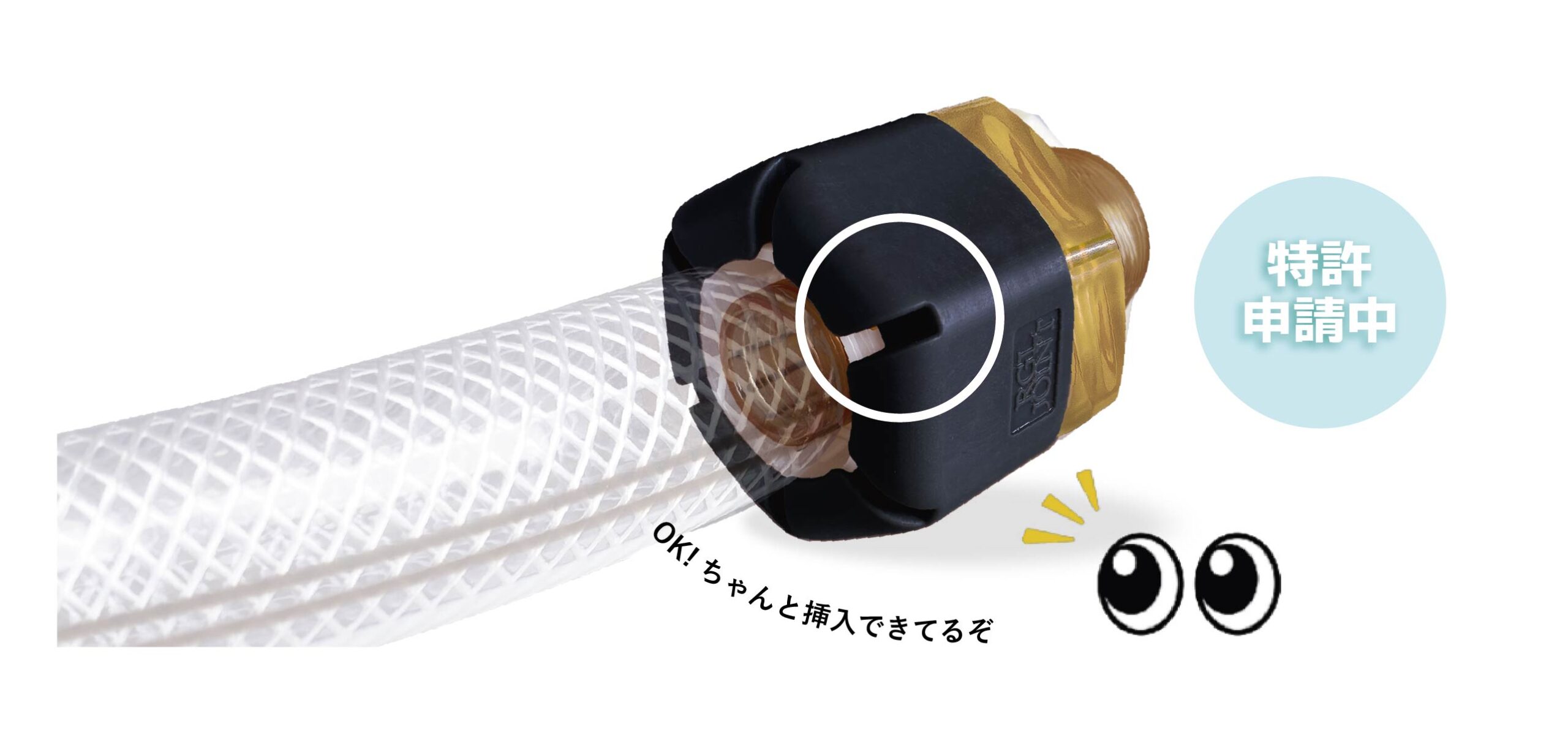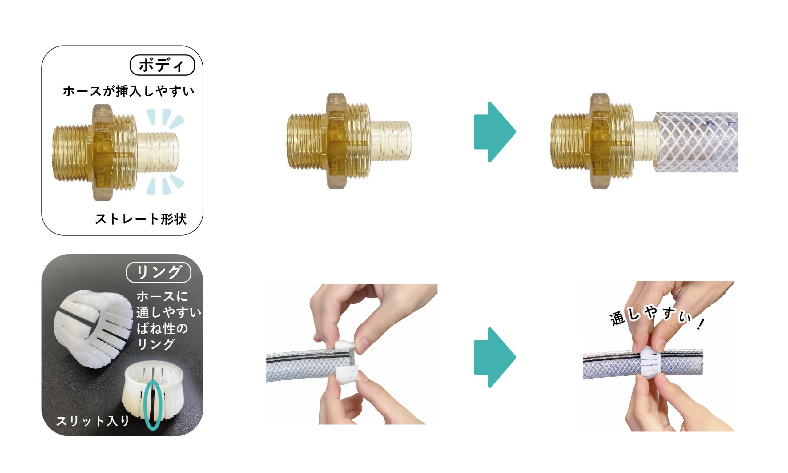 リングはスリット入りにして、ホースの通しやすさを考慮
