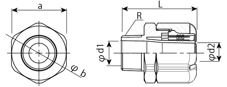 | R | L | φd1 | φd2 | ホース 内径×外径 | a | φb |